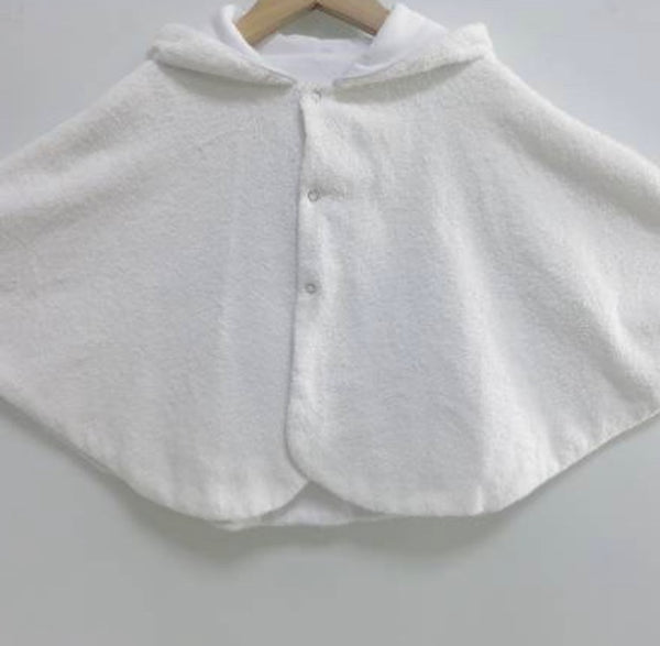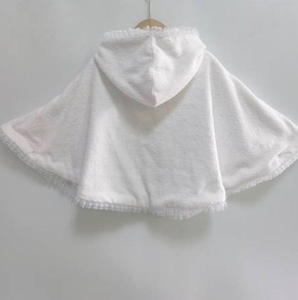 Girls is complete with a white lace front and popper buttons , finished with a lace white bow. The towel is cream to the exterior and a smooth white cotton to the interior of the towel.