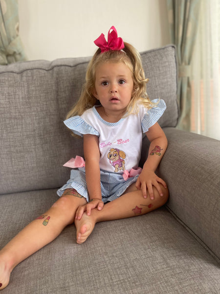 A stunning cotton two piece set, perfect for all of your embroidery needs. Choose from a simple name or from some mini designs to make your item unique. 🤍💛💗💜💙