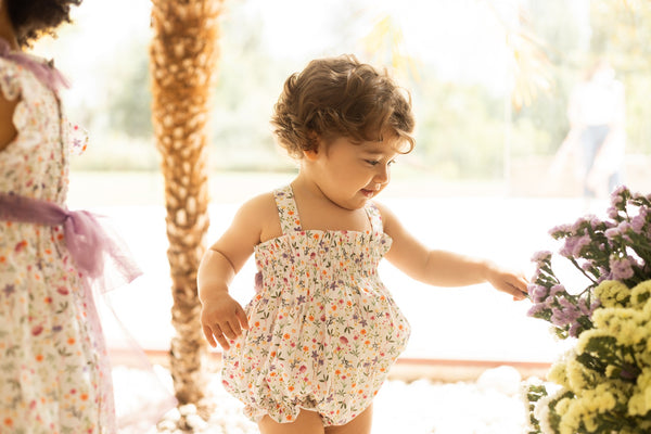 Purple florals are a must this SS22. Paired with a purple tutu bow to set the look to the rear of the outfit!