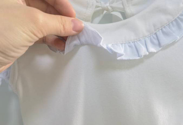 The top has a bow to tie the swim top to the back and a separate pair of knickers for if your child likes just a swim pant in the garden. The top is made to fall slightly over the knickers to give a swimsuit appearance but the luxury of having the best of both worlds.