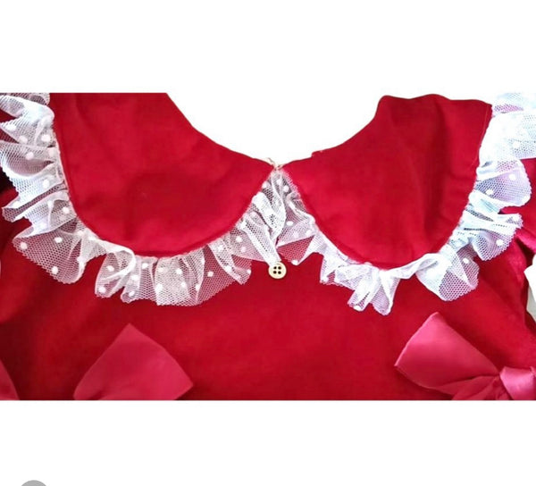 A gorgeous thick, giving your baby comfort and warmth in these winter months. Paired with a small gold shoe button to set the tone. Finished with an off white / green or red lace.
