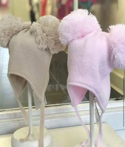 A Gorgeous thick pom pom hat available in either double of single pom Poms.